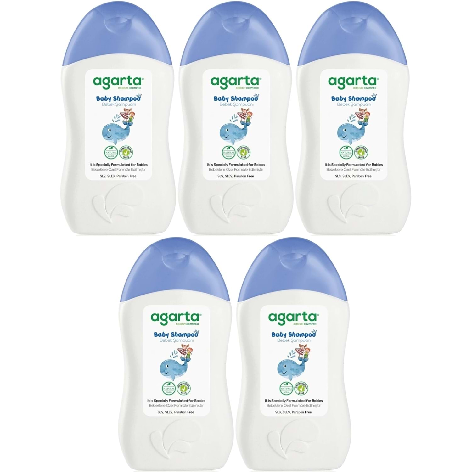 Agarta Doğal Erkek Bebek Çocuk Şampuanı Saç ve Vücut 400 ML (5 Li Set)