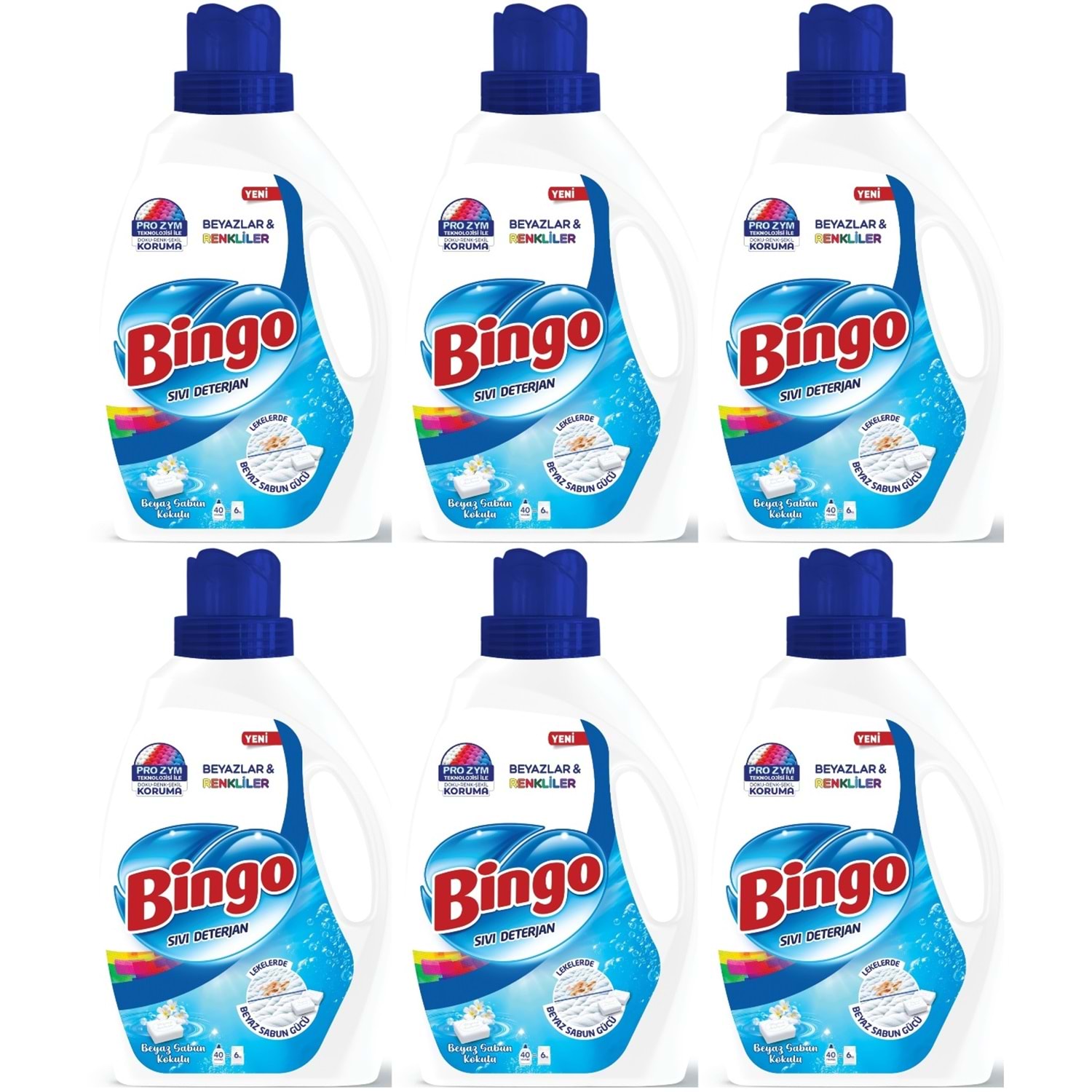 Bingo Sıvı Çamaşır Deterjanı 15600ML Beyaz Sabun Kokulu Beyazlar ve Renkliler 6 Lı Set (6PK*2.600ML)