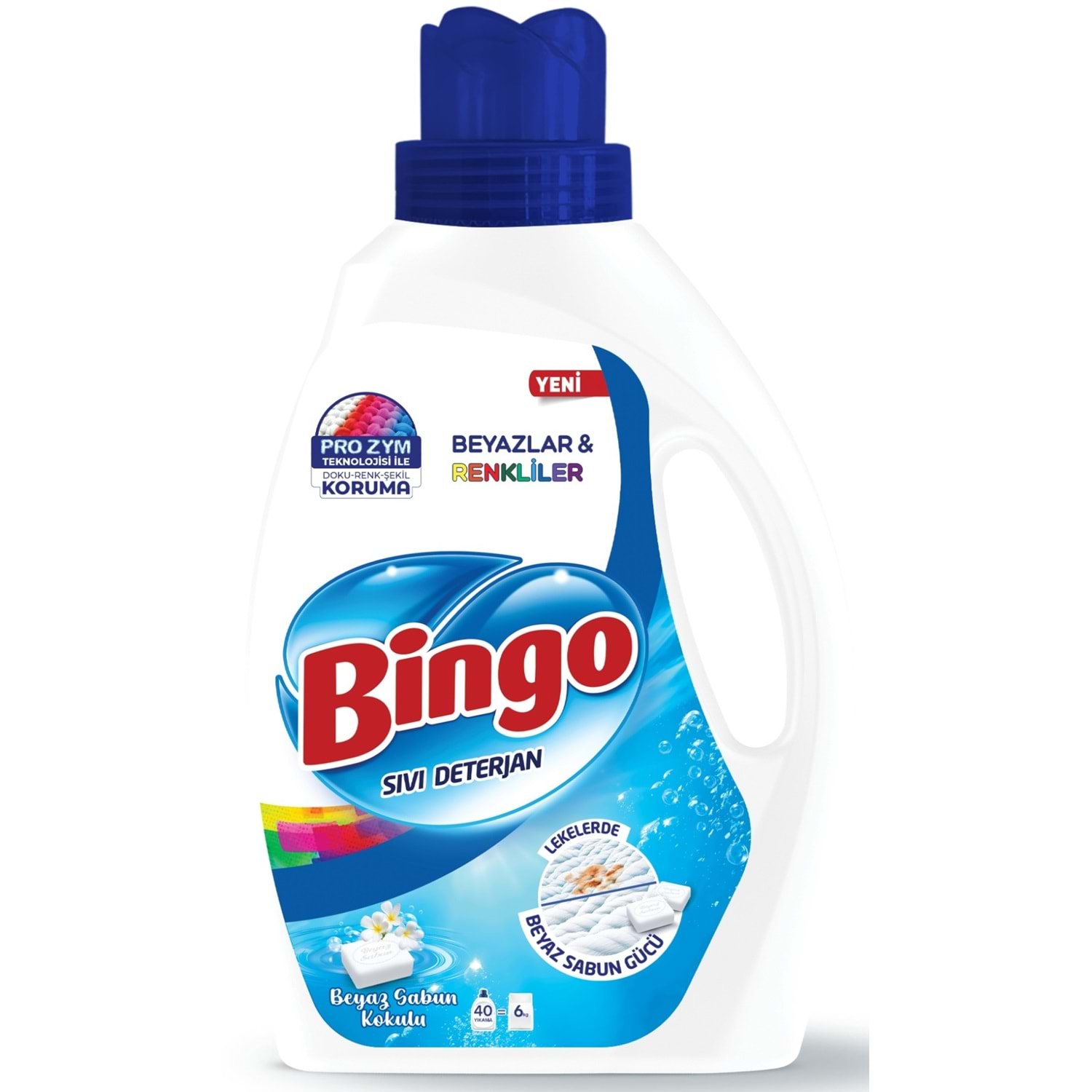 Bingo Sıvı Çamaşır Deterjanı Beyaz Sabun Kokulu, beyazlar ve renkliler için günlük yıkama ihtiyaçlarına uygun olarak geliştirilmiştir. Sıvı formu sayesinde kolay çözünür ve çamaşırlarda ferah bir temizlik hissi bırakmaya yardımcı olur.