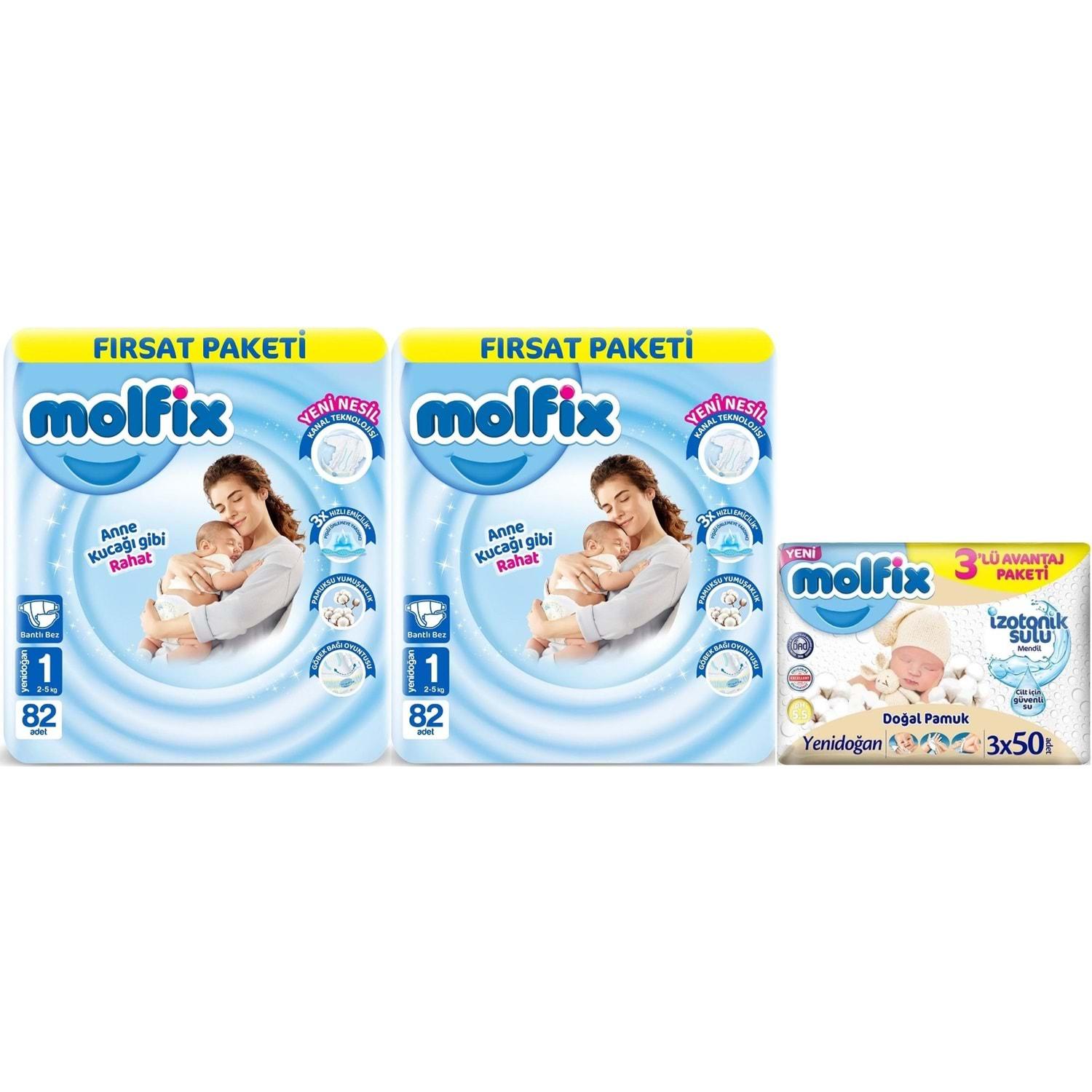 Molfix Bebek Bezi Beden:1 (2-5KG) Yeni Doğan 164 Adet Ekonomik Fırsat Pk + 3 Adet Islak Mendil