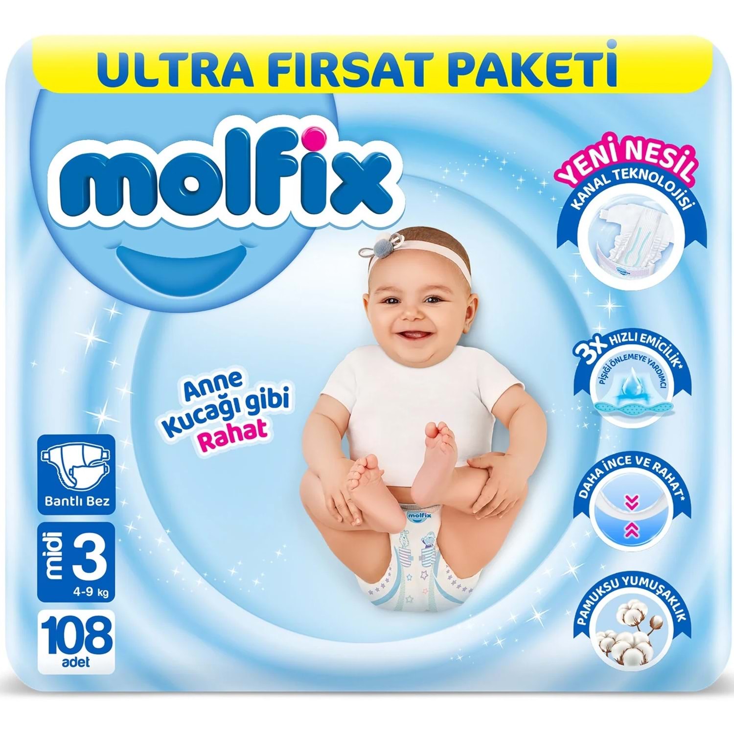 Molfix Bebek Bezi Beden:3 (4-9Kg) Midi 540 Adet Mega Ultra Fırsat Pk