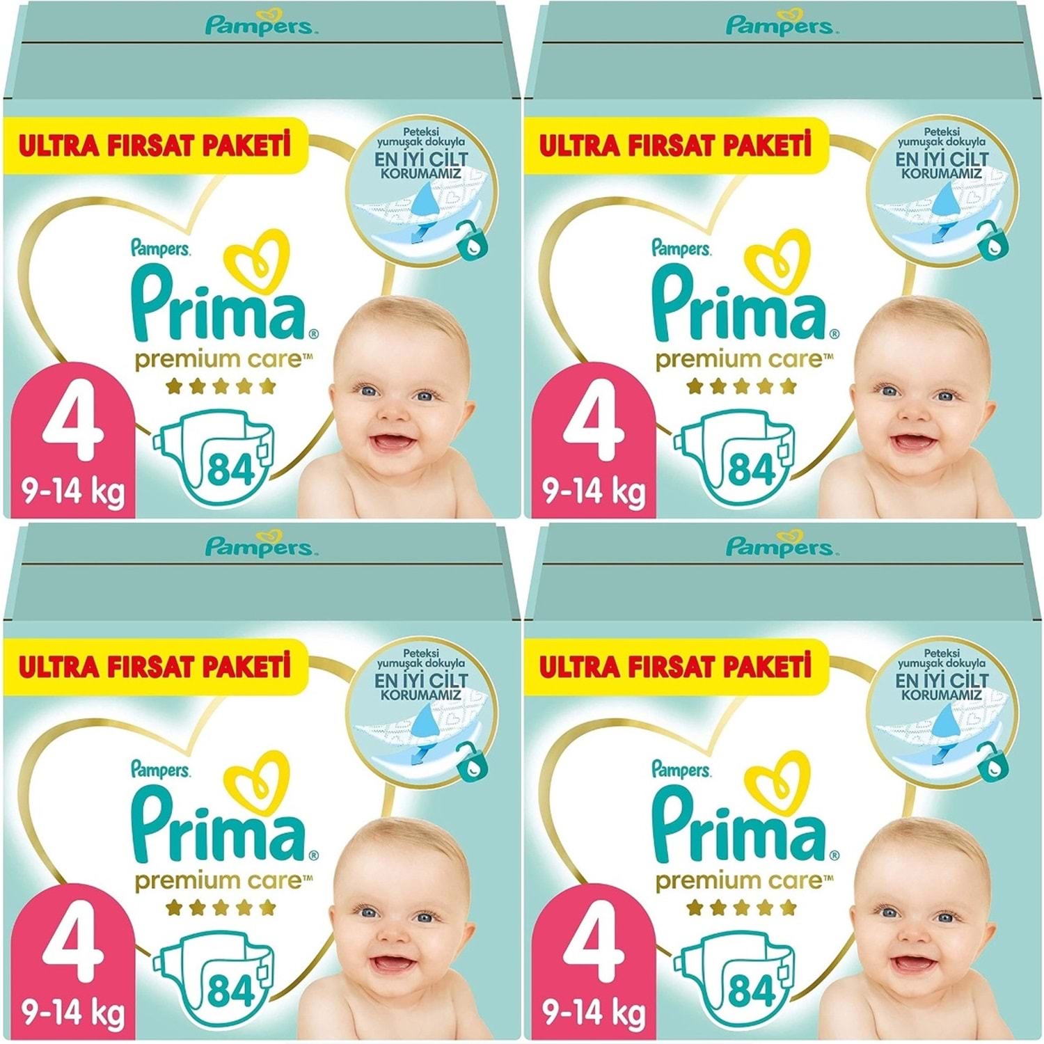 Prima Premium Care 4 numara (9–14 kg) bebek bezi, bebeklerin hassas ciltleri için üstün koruma ve yumuşaklık sunar. Nefes alabilen yüzeyi, ultra emici tabakası ve esnek yan bantlarıyla uzun süreli kuru konfor sağlar. 84’lü ultra fırsat paketiyle ekonomik kullanım avantajı sunar.