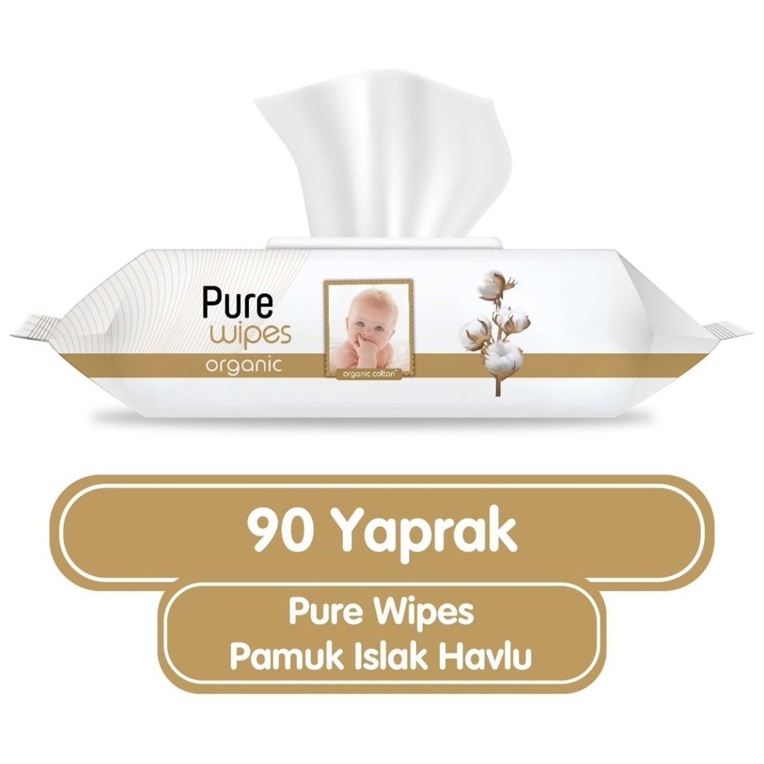 Pure Baby Islak Havlu Mendil 90 Yaprak Yenidoğan Organic Pamuklu Plst Kapak