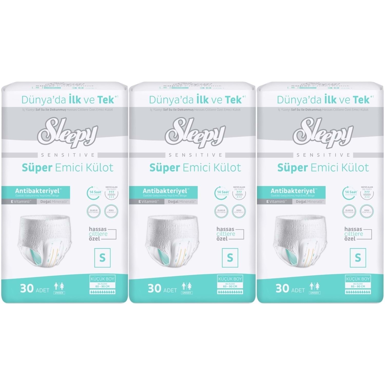 •	Tekli paket içerisinde 30 adet emici külot bulunur.