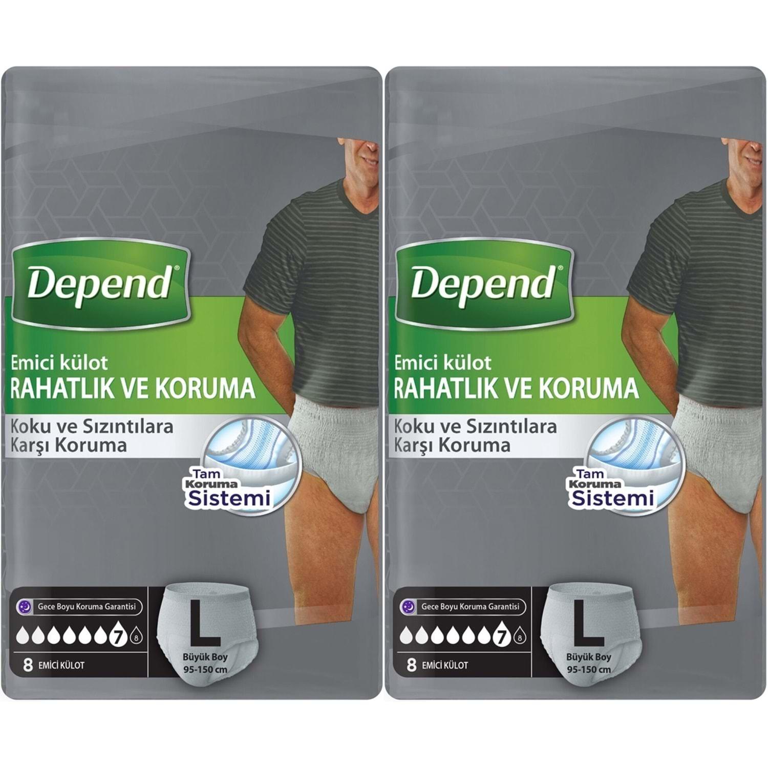 Depend Emici Külot Pants Hasta Bezi L - Büyük - Large Erkek 16 Adet (2PK*8) Mandaş Group Güvencesi ve Kalitesiyle...!