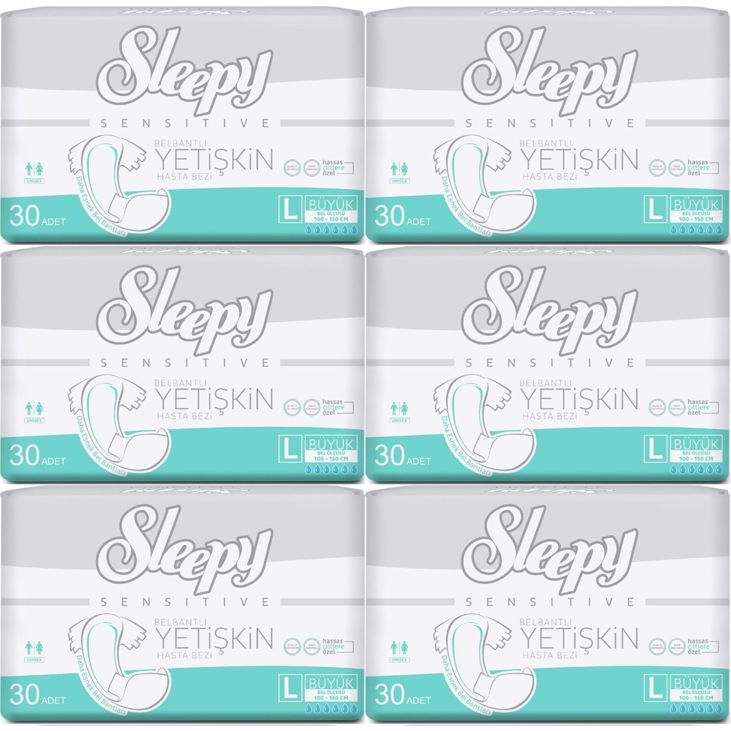 Sleepy Yetişkin Hasta Bezi Bel Bantlı L - Large - Büyük 180 Adet (6PK*30)