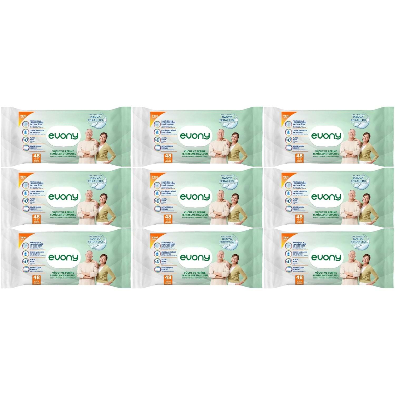 Evony Hasta Vücut Perine Temizleme Islak Mendil Havlu 48 Yaprak XL Banyo Ferahlığı (9 Lu Set)
