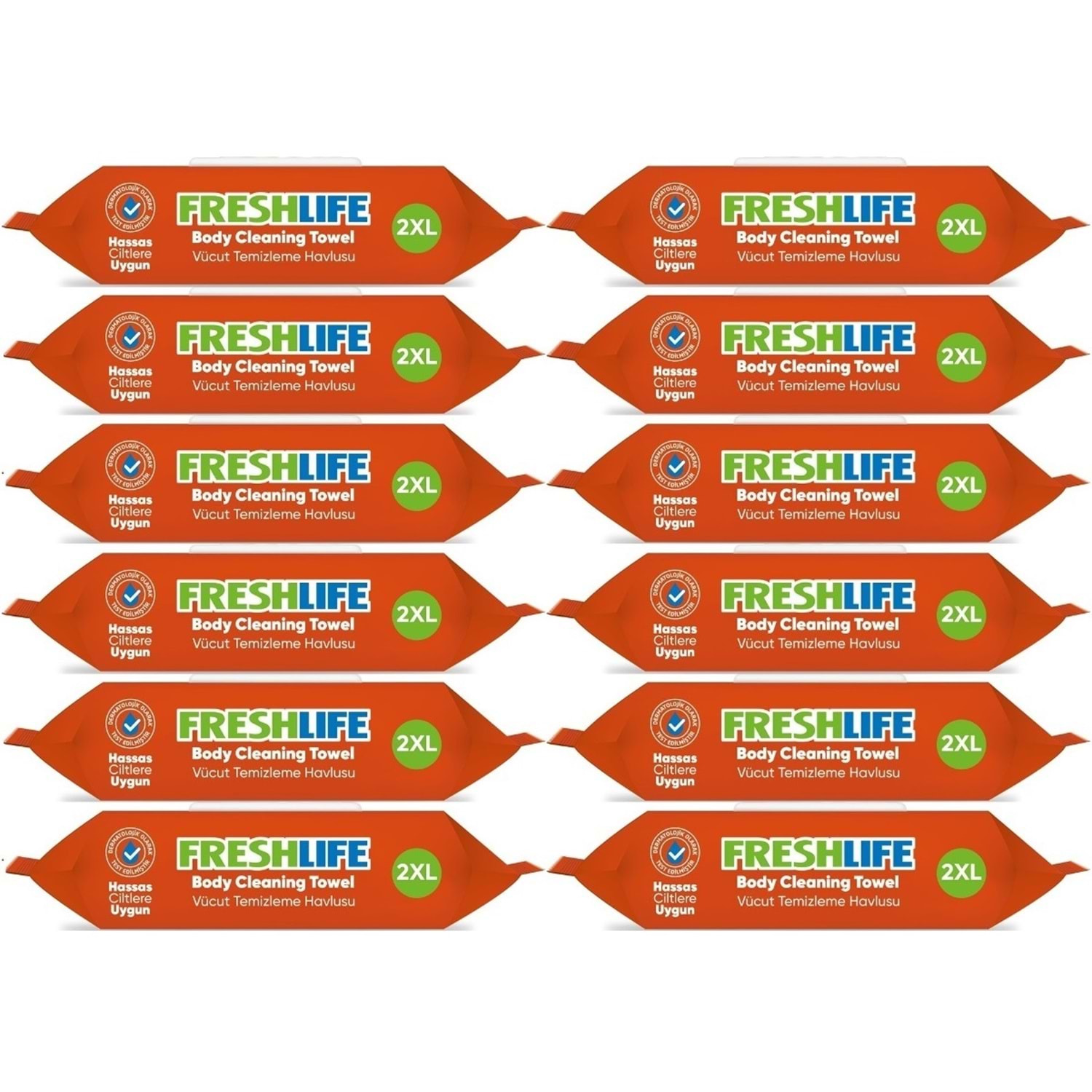 Freshlife Hasta Vücut Temizleme Islak Mendil Havlu 50 Yaprak XL (12 Li Set)