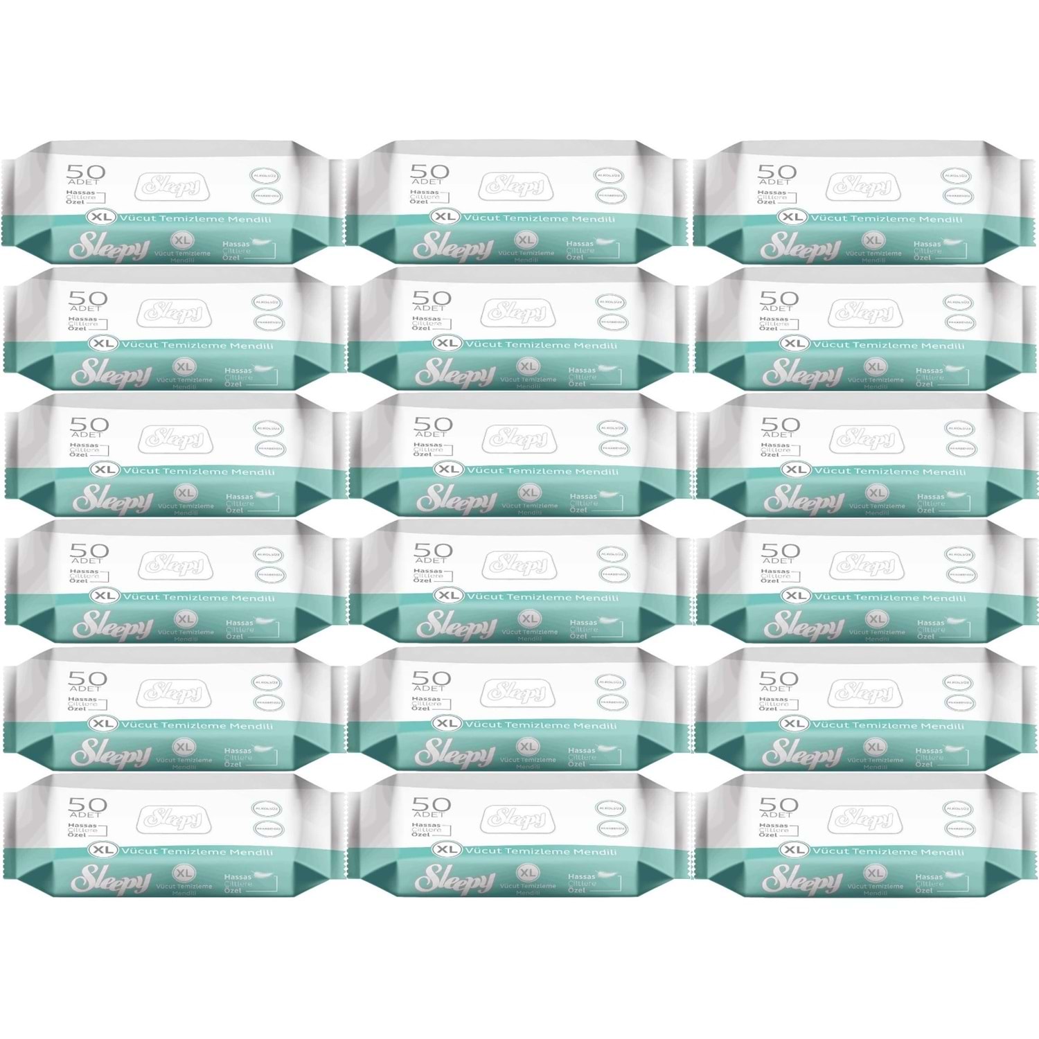 Sleepy Hasta Vücut Temizleme Islak Mendil Havlu 50 Yaprak XL 18 Li Set (3Pk*6)