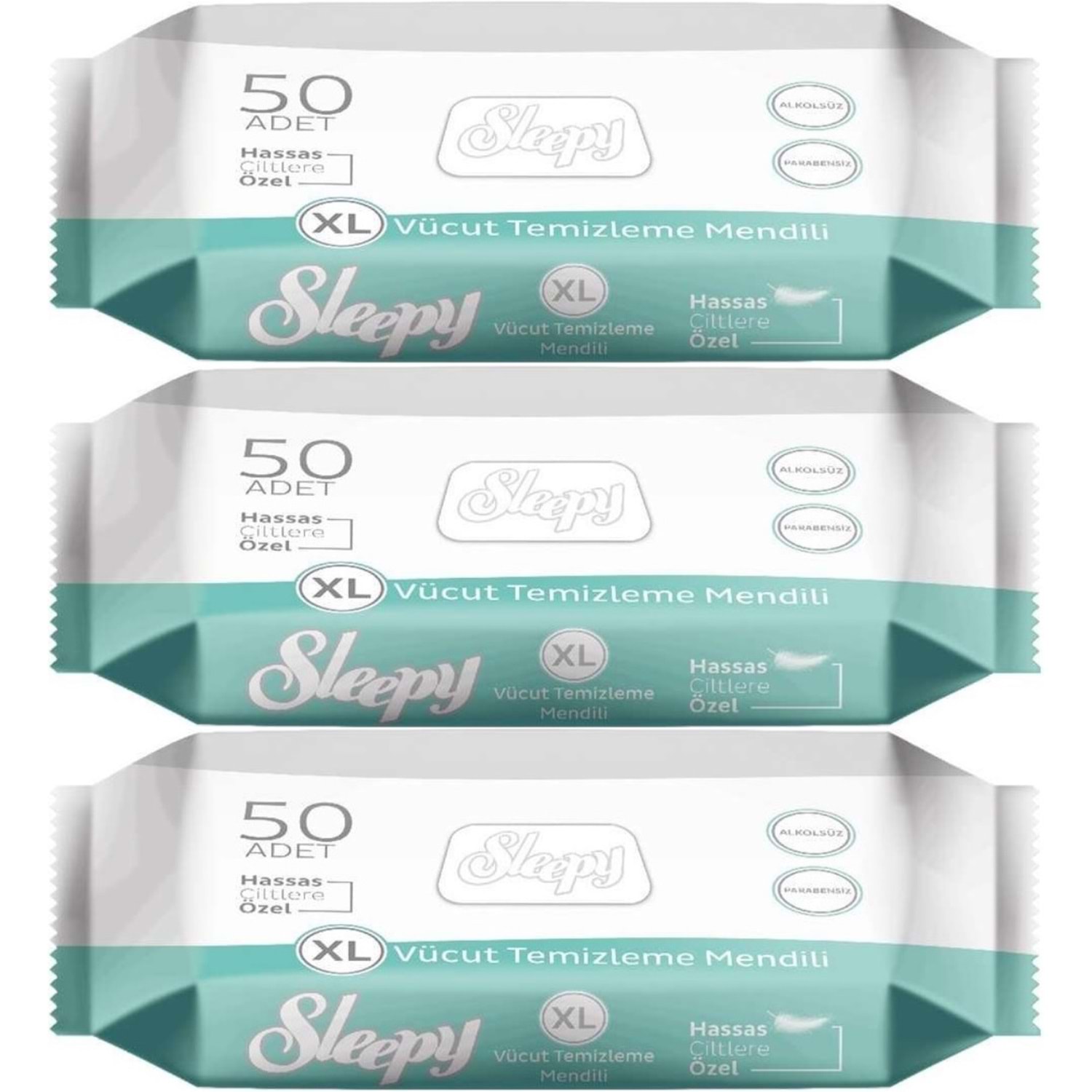 Sleepy Hasta Vucüt Temizleme Islak Mendil Havlu 50 Yaprak XL (3 Lü Set)