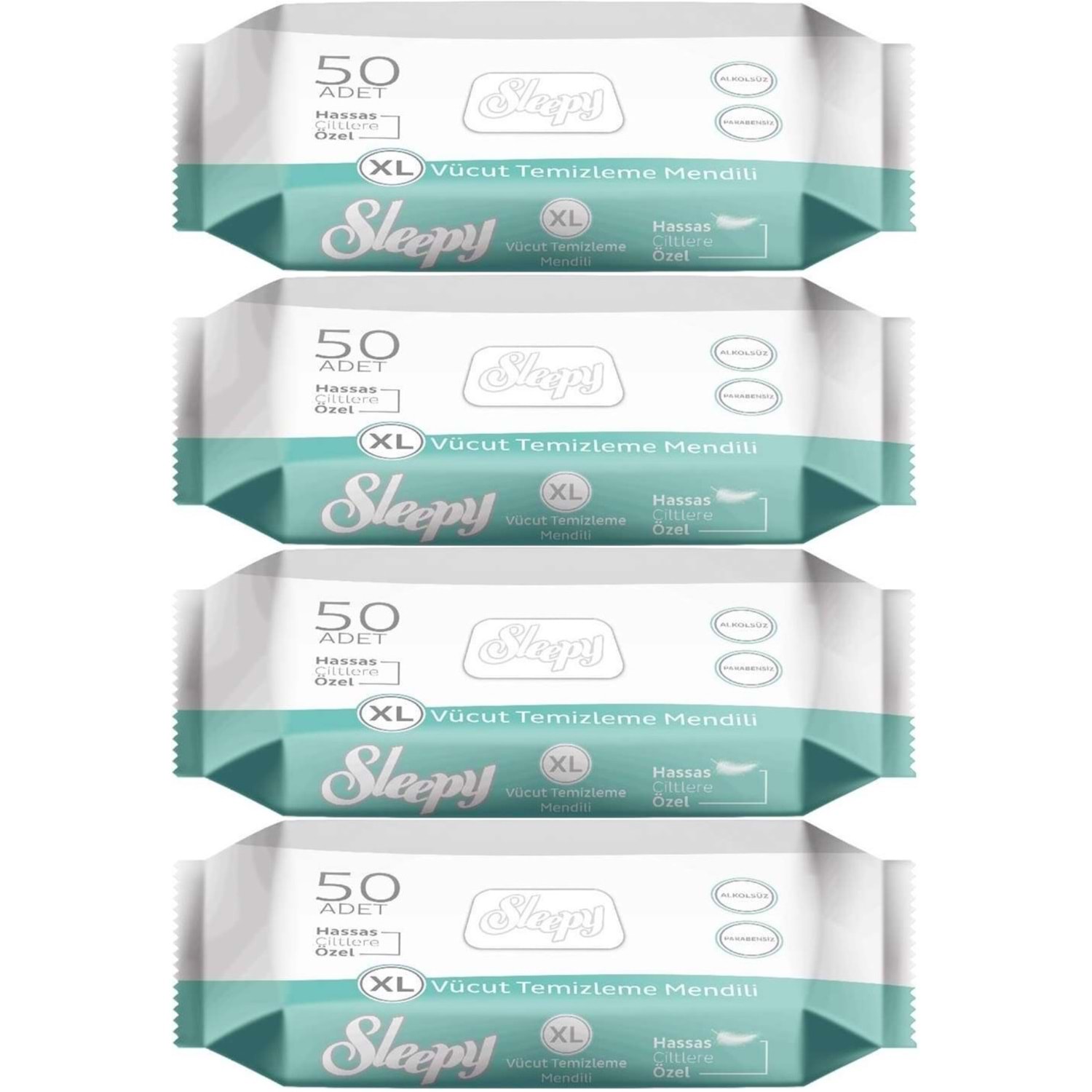 Sleepy Hasta Vücut Temizleme Islak Mendil Havlu 50 Yaprak XL (4 Lü Set)