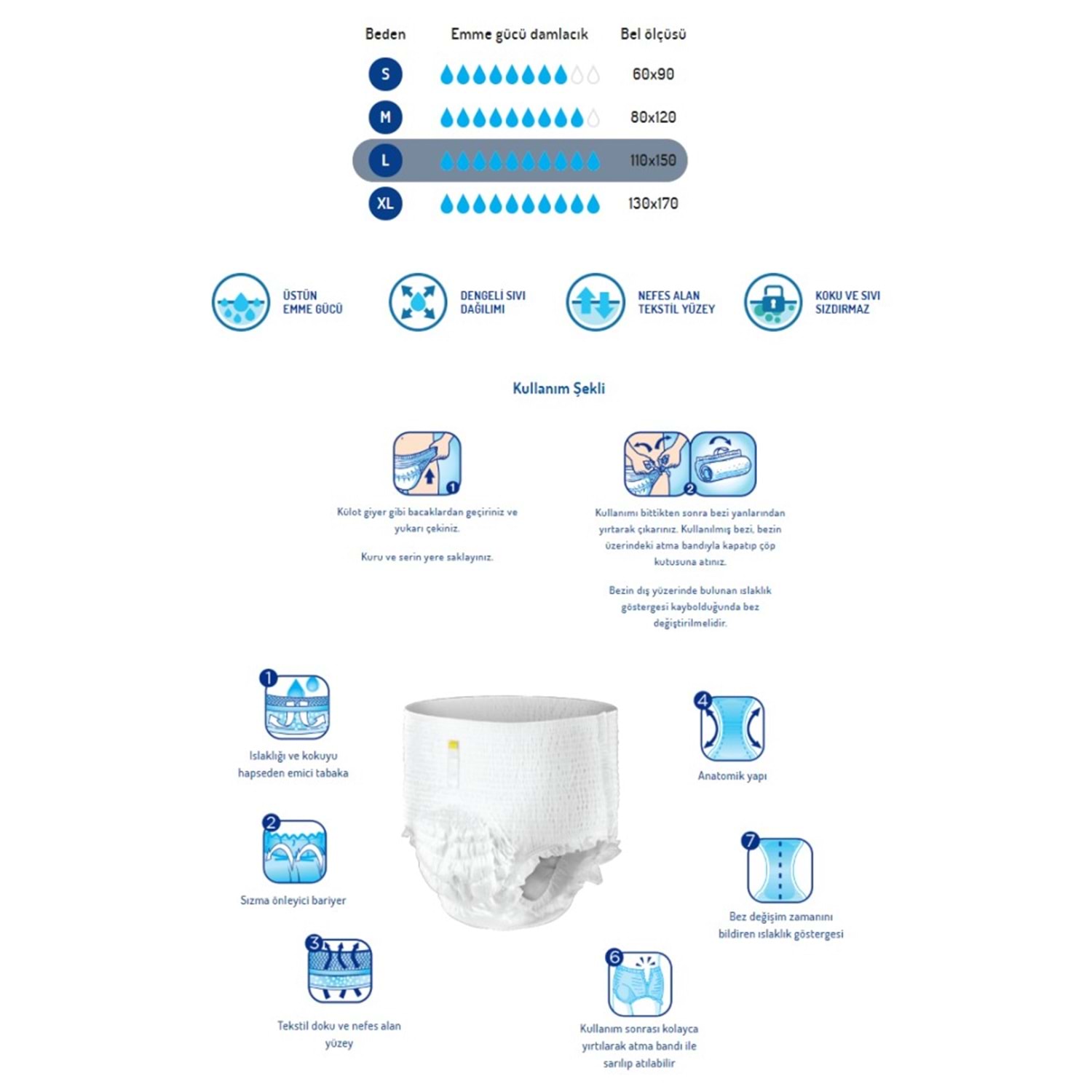 Islaklık ve kokuyu hapseden özel emici tabakası sayesinde kuru ve güvende hissettirir.