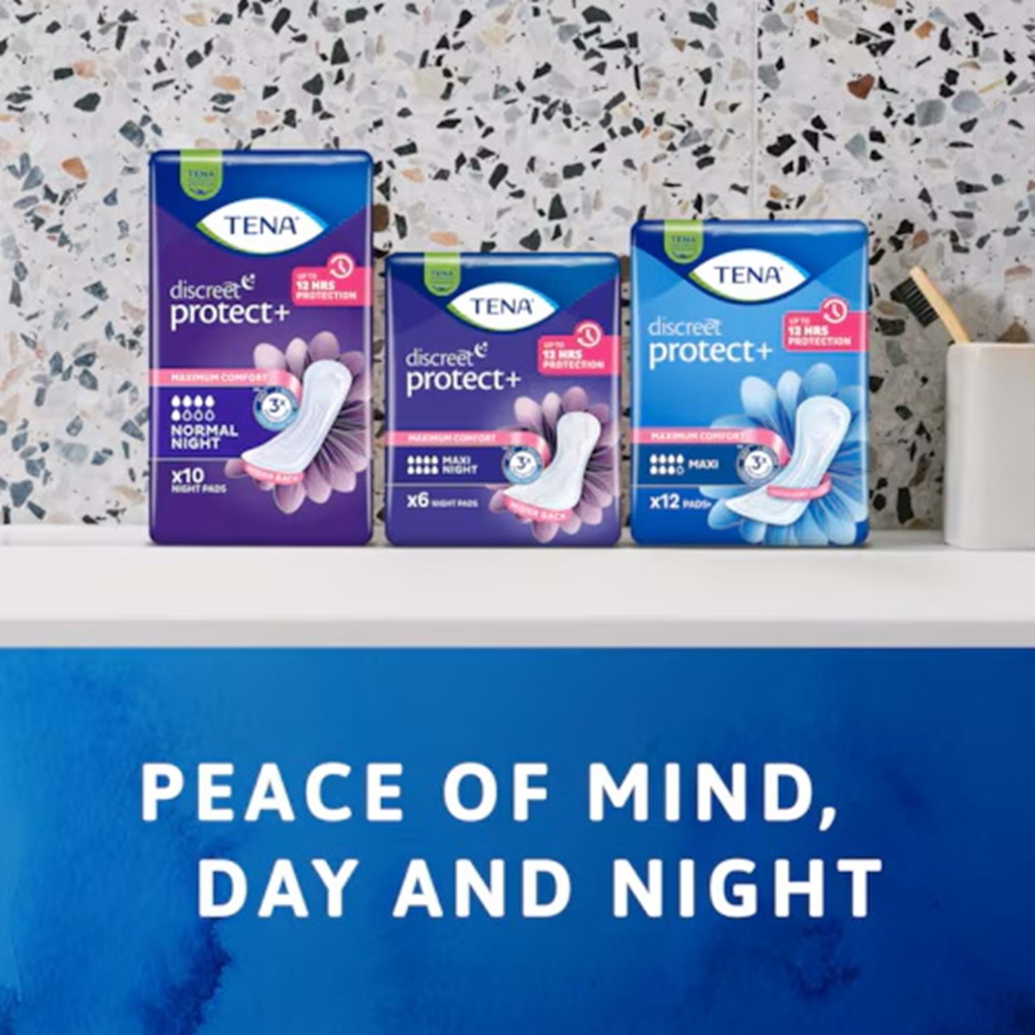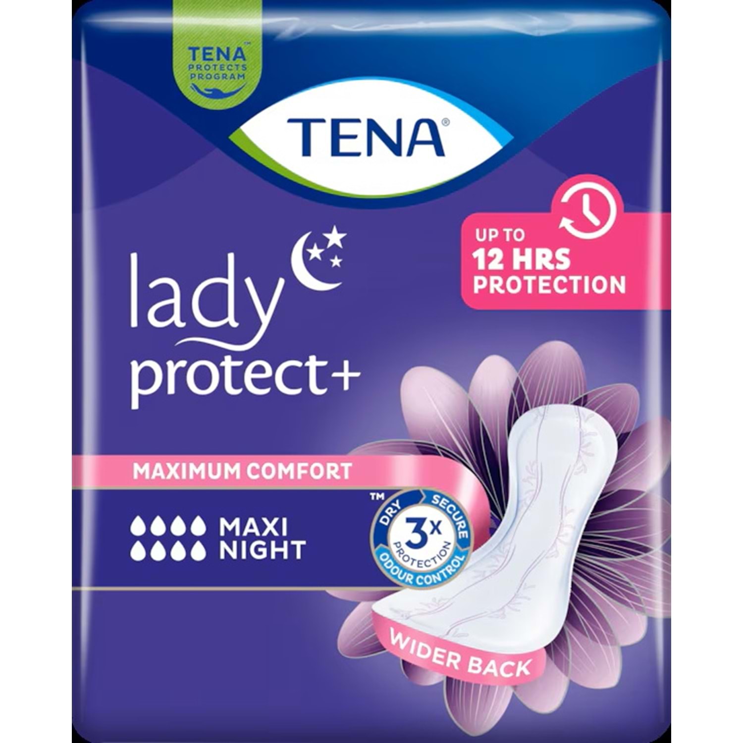Gece boyunca güvenle uyuyun, sabaha kuru ve rahat uyanın. Tena Lady Protect Maxi Night ile konforu ve güveni bir arada yaşayın.