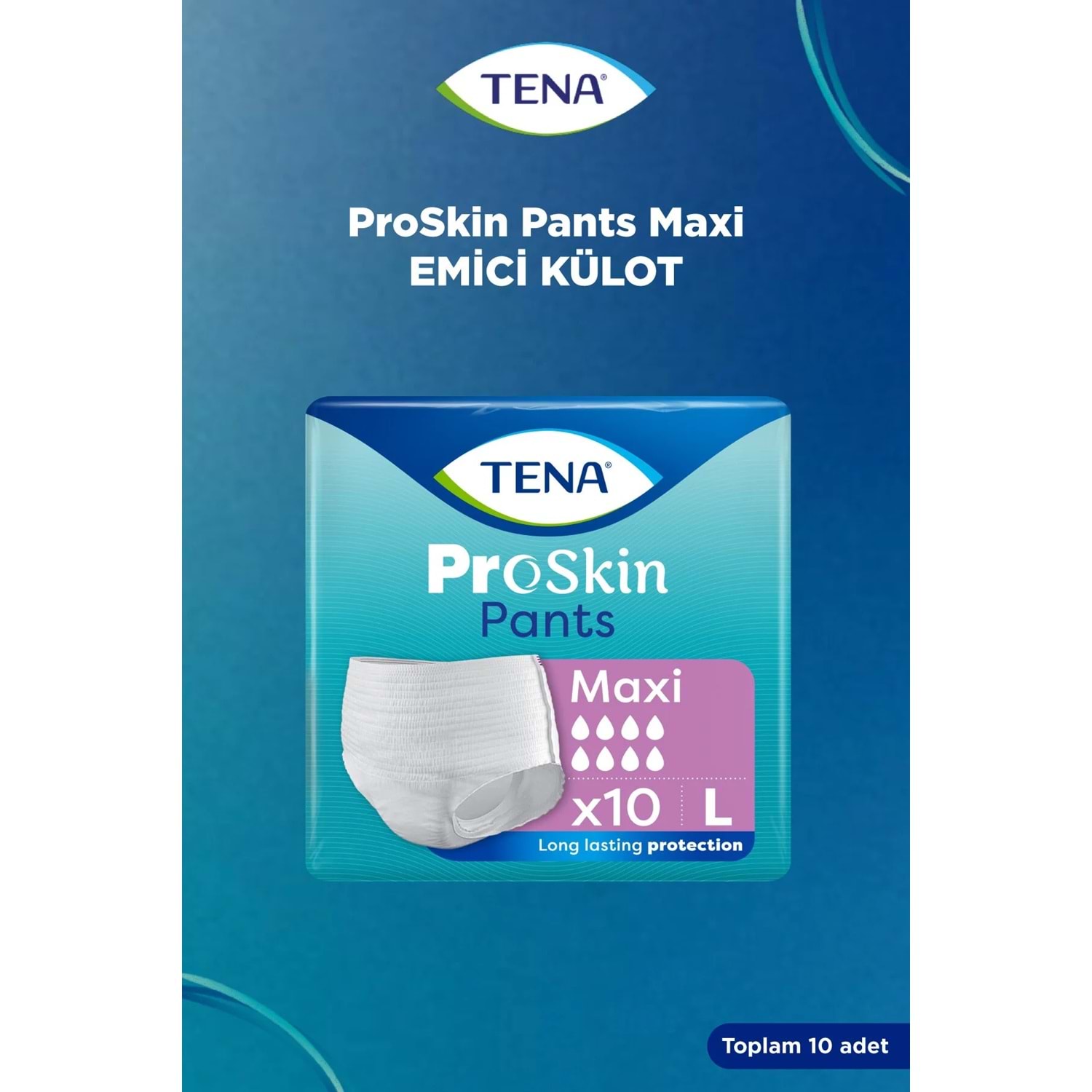 Günlük yaşamda maksimum koruma ve konfor arayanlar için geliştirilen Tena ProSkin Pants Maxi, güçlü emiş teknolojisi ve vücuda tam uyum sağlayan yapısıyla güvenli bir kullanım sunar. Orta ve yoğun seviyedeki sızıntılara karşı etkili performansı sayesinde gün boyu rahatlık sağlar.