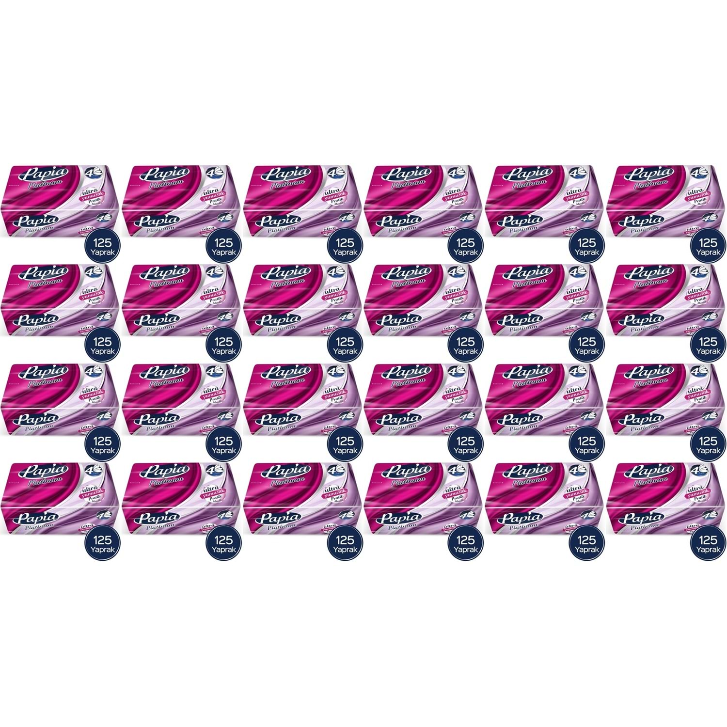 Papia Platinum Pratik Mendil 125 Yaprak (4 Katlı) 3000 Yaprak (24PK*125)