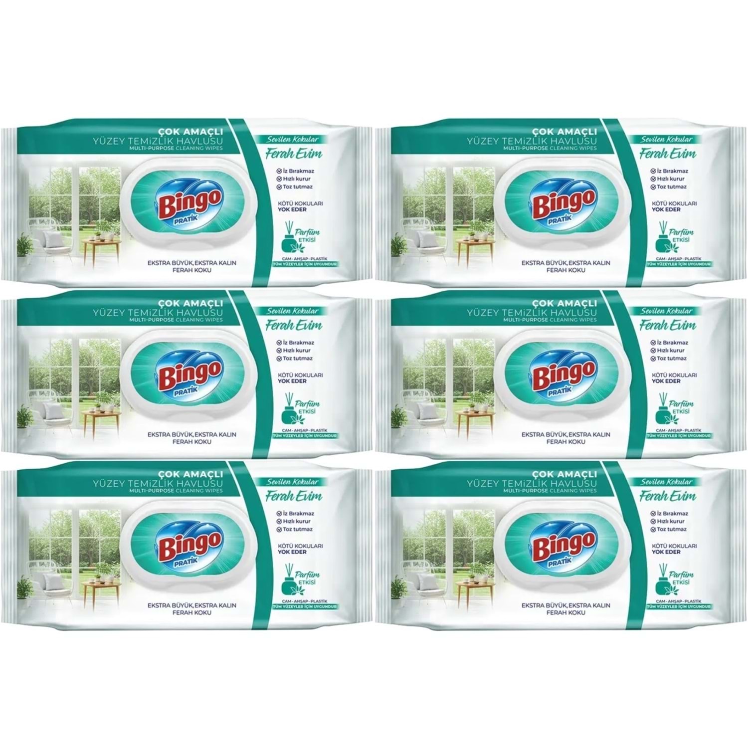 Bingo Clean Yüzey Temizlik Havlusu 96 Yaprak Sevilen Kokular Ferah Evim (6 Lı Set) 576 Yaprak