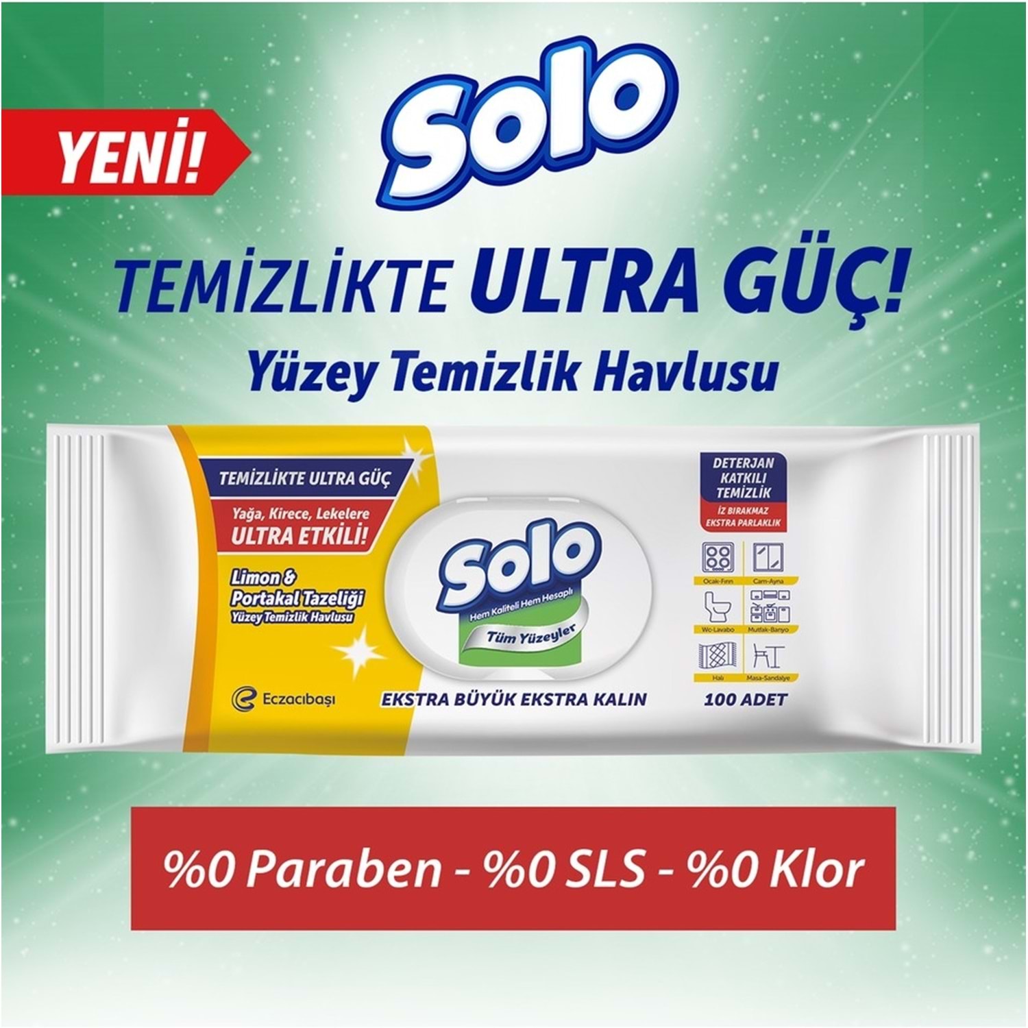 Solo Yüzey Temizlik Havlusu, günlük temizlik ihtiyaçları için pratik ve etkili kullanım sunar. Limon ve portakal tazeliği sağlayan kokusuyla temizlik sonrası ferah ve canlı bir ortam oluşturur. Plastik kapaklı ambalajı sayesinde mendillerin nemi uzun süre korunur.