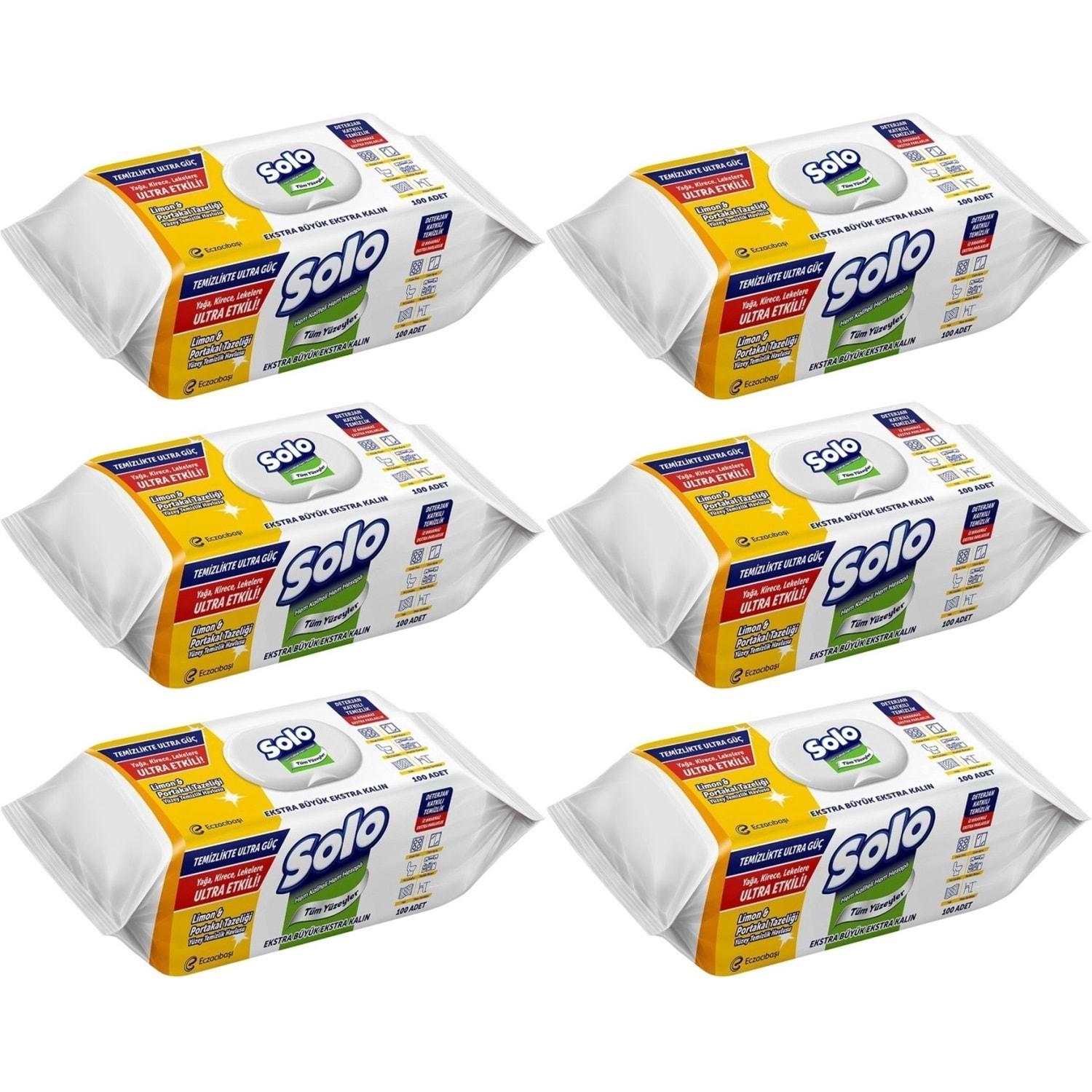 Solo Yüzey Temizlik Havlusu - Mendili 100 Yaprak Limon & Portakal Tazeliği (6 Lı Set) 600 Yaprak