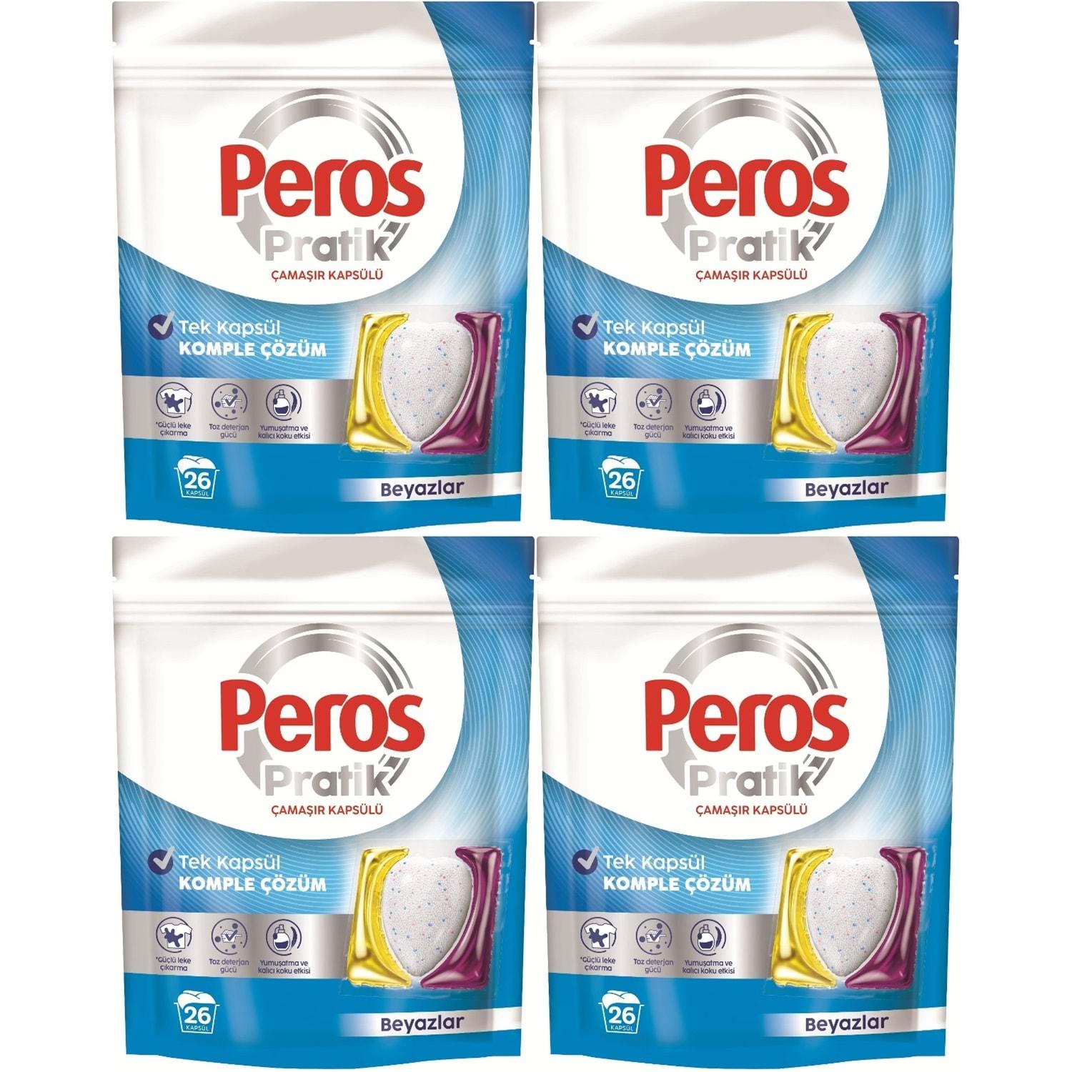 Peros Pratik Matik Çamaşır Deterjanı Kapsülü - Tableti 104 Adet Beyazlar (4PK*26)