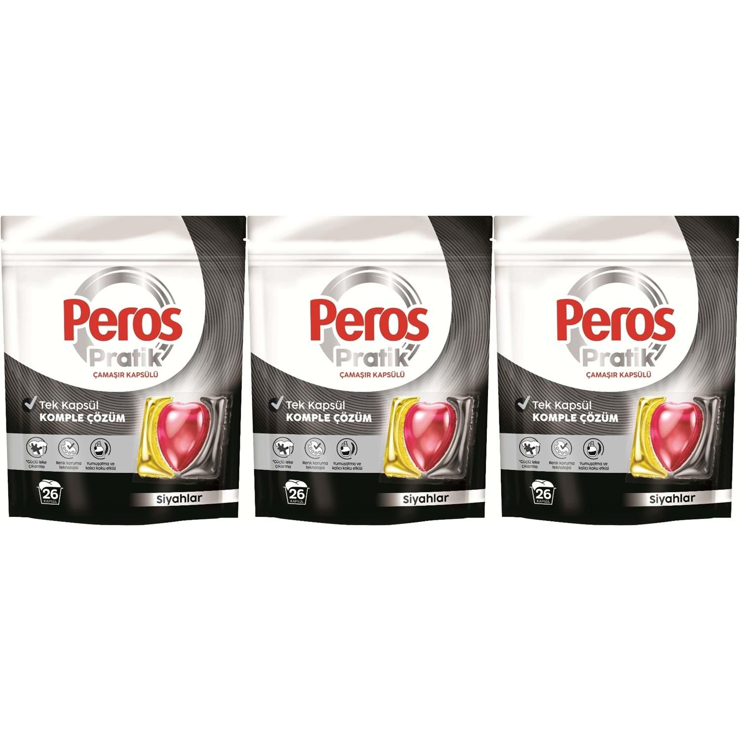 Peros Pratik Matik Çamaşır Deterjanı Kapsülü - Tableti 78 Adet Siyahlar (3PK*26)
