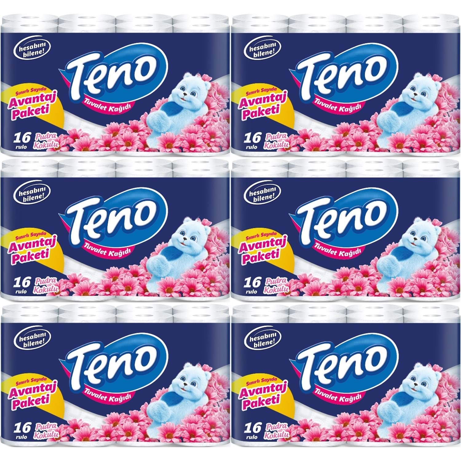 Teno Ultra Tuvalet Kağıdı Çift Katlı 96 Lı Set (6PK*16) Pudra Kokulu (Avantaj Pk Serisi)