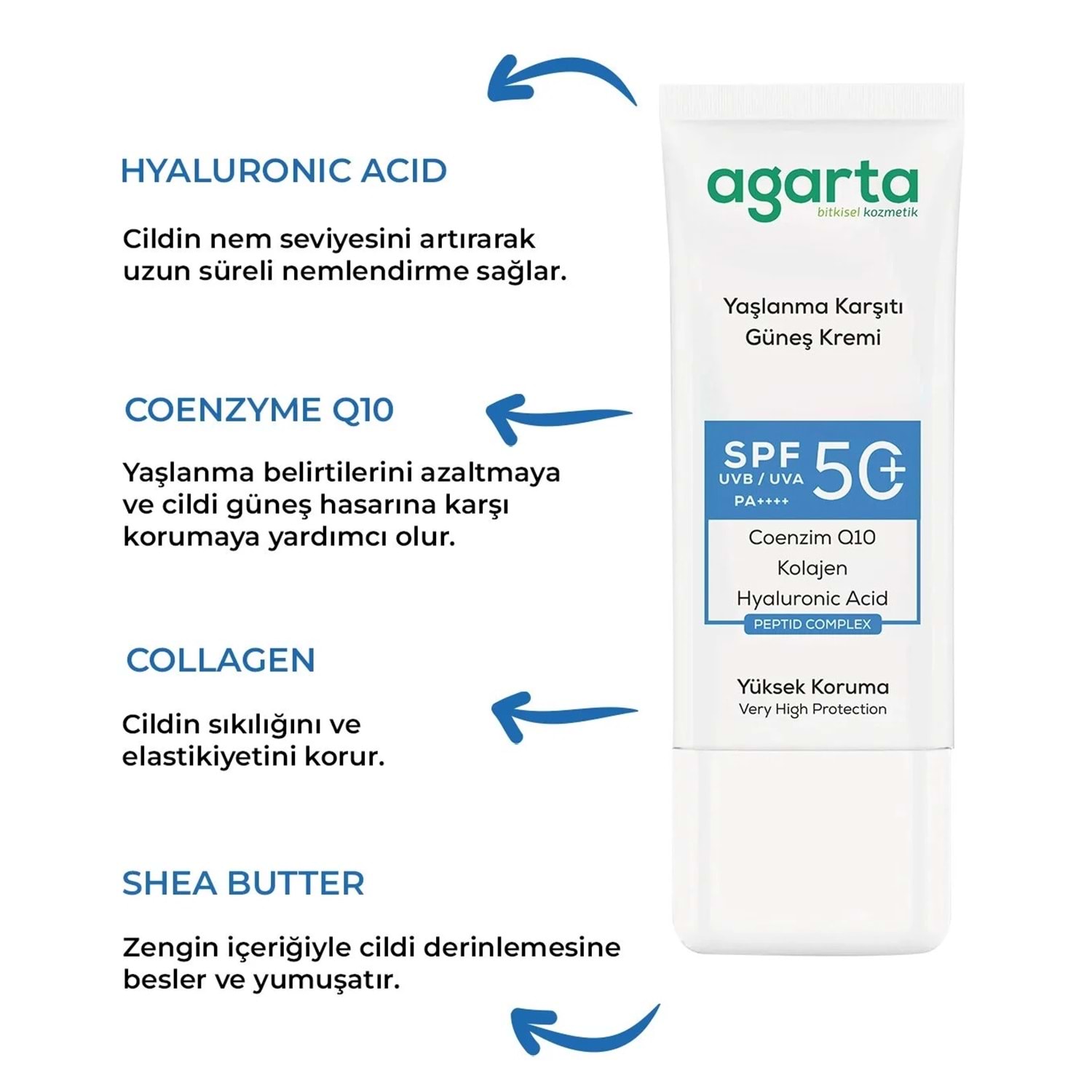Agarta Yaşlanma Karşıtı Collagen Destekli Spf+50 Faktör Yüz Güneş Kremi 50 ML (4 Lü Set)