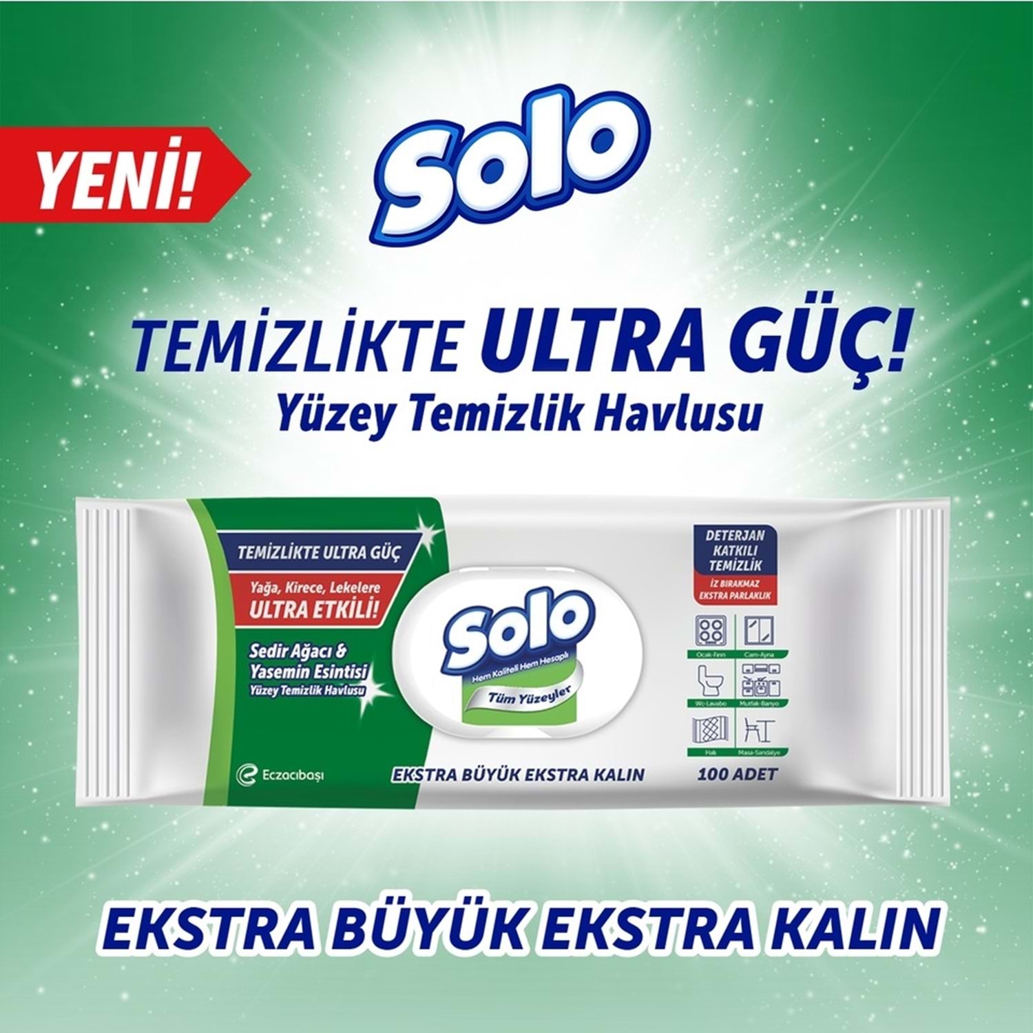 Solo Yüzey Temizlik Havlusu, günlük temizlik ihtiyaçları için pratik ve etkili kullanım sunar. Sedir ağacı ve yasemin esintili kokusuyla temizlik sonrası ferah bir ortam sağlar. Plastik kapaklı ambalajı sayesinde mendillerin nemi uzun süre korunur.